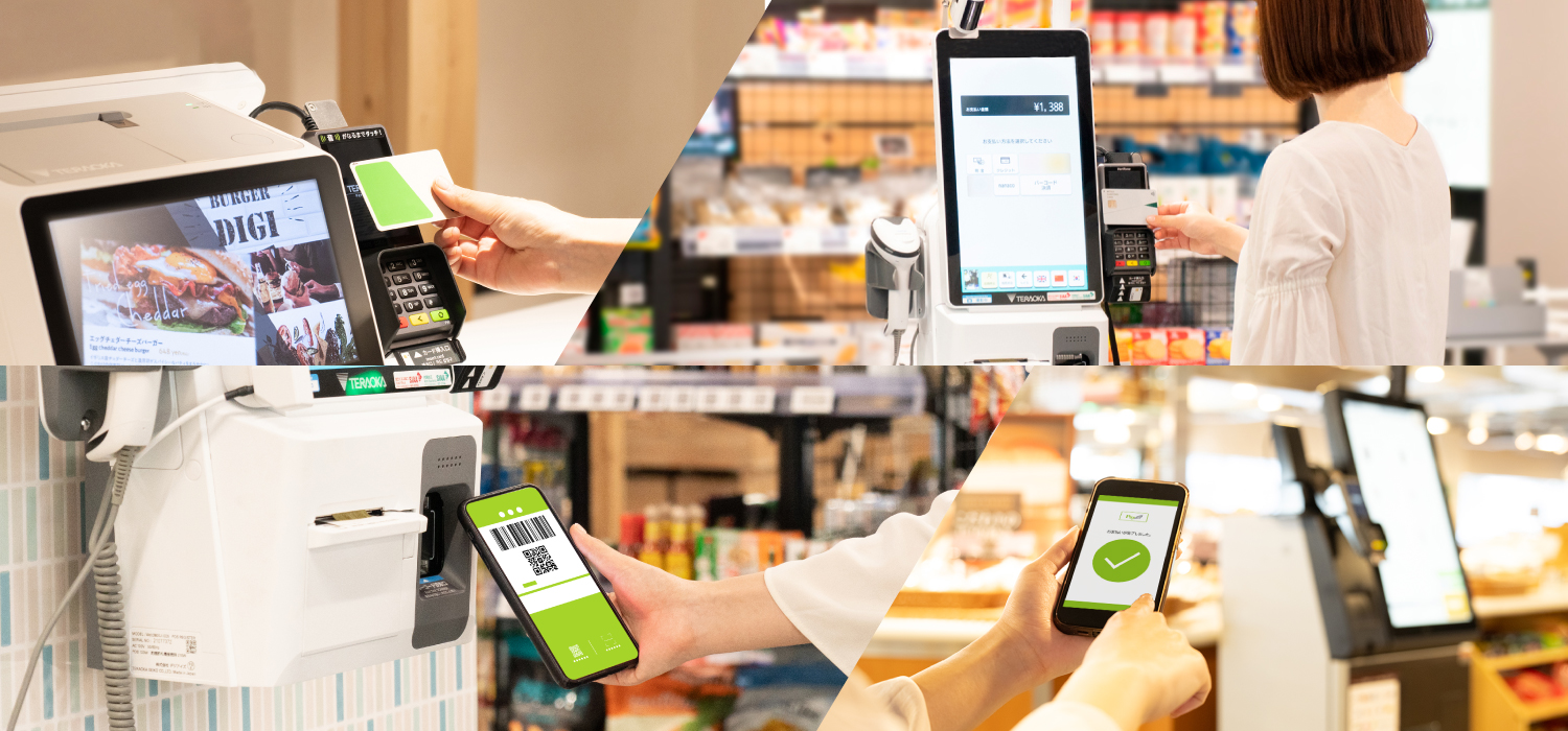 Payossの決済端末は寺岡精工の券売機やPOSレジと完全連動。二度打ちが不要になり、スピーディーな会計処理を実現。