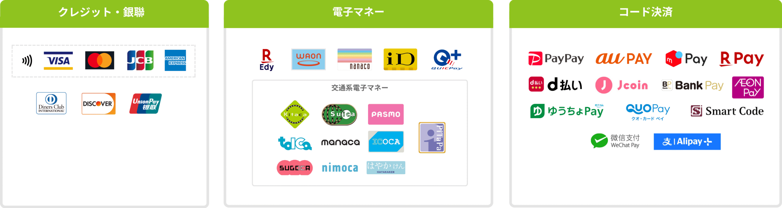 Payossでは幅広い決済ブランドをご利用いただけます。
