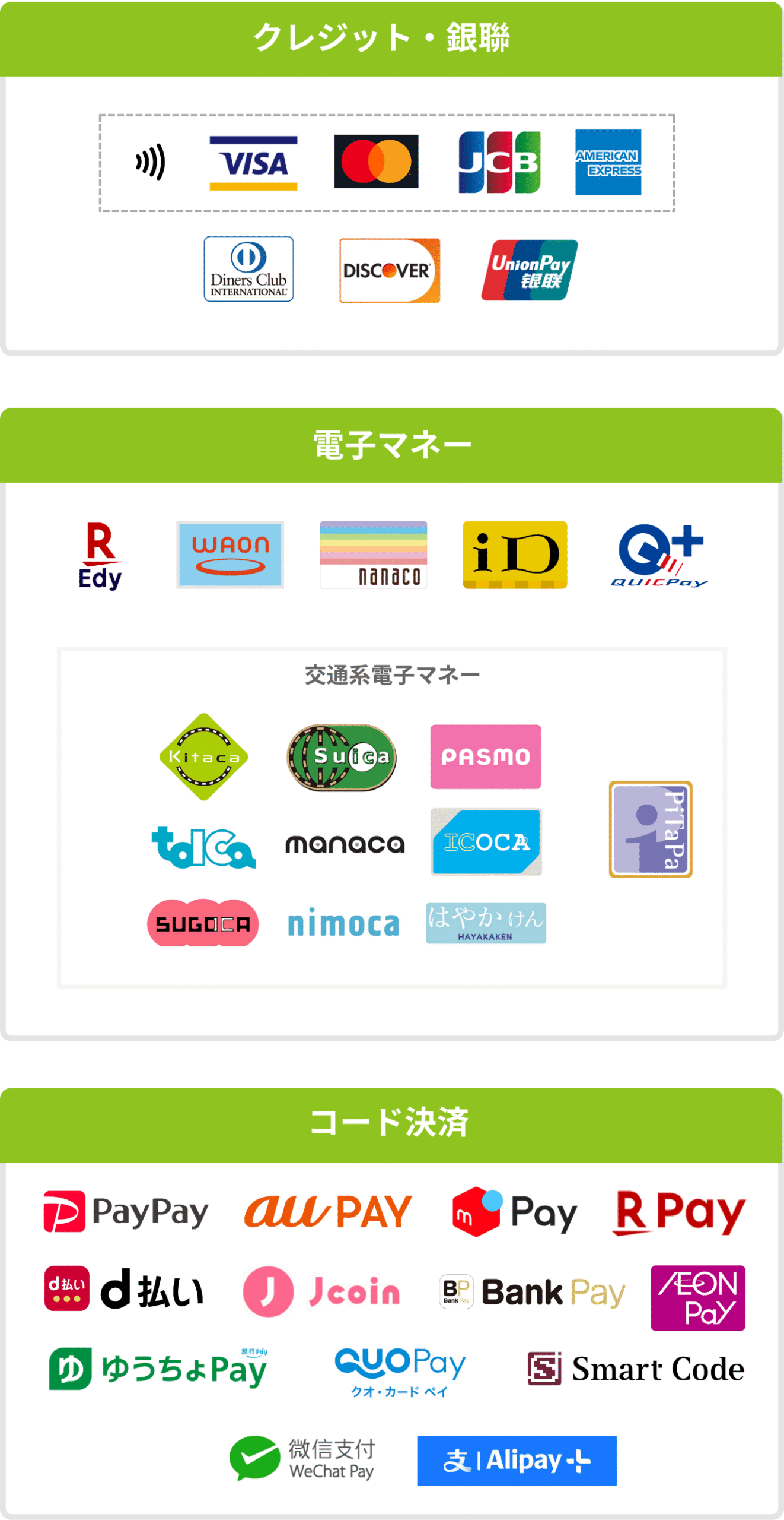 決済端末のPOS実装型で、豊富な決済ブランドの契約からサポートまで、キャッシュレス決済に関わるすべてをワンストップでご提供いたします。