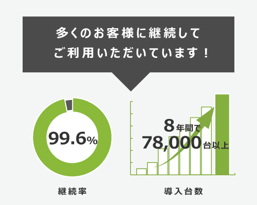 導入台数も年々増加。多くのお客様にご満足いただき、導入後も継続してご利用いただいています。