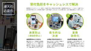 当院のように患者さんとのコミュニケーションを大事にしているクリニックにとっては、自動精算機よりもセルフ精算レジのほうが合っていると感じます。会計は自身でやってもらいつつ、受付スタッフと患者さんが会話できるいい距離感を保てるのが魅力です。